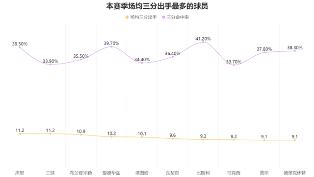 每当提起三分神射手时,人们总会想到库里塔图姆利拉德这样的名字,但其实爱德华兹本赛季场均三分出手达到了10.2次命中率为39.7%,在联盟场均三分出手最多的10名球员中他的命中率仅次于活塞的比斯利,从基础数据来看他已经是联盟最顶级档次的三分手了,不过单看这个三分命中率并不拔尖。